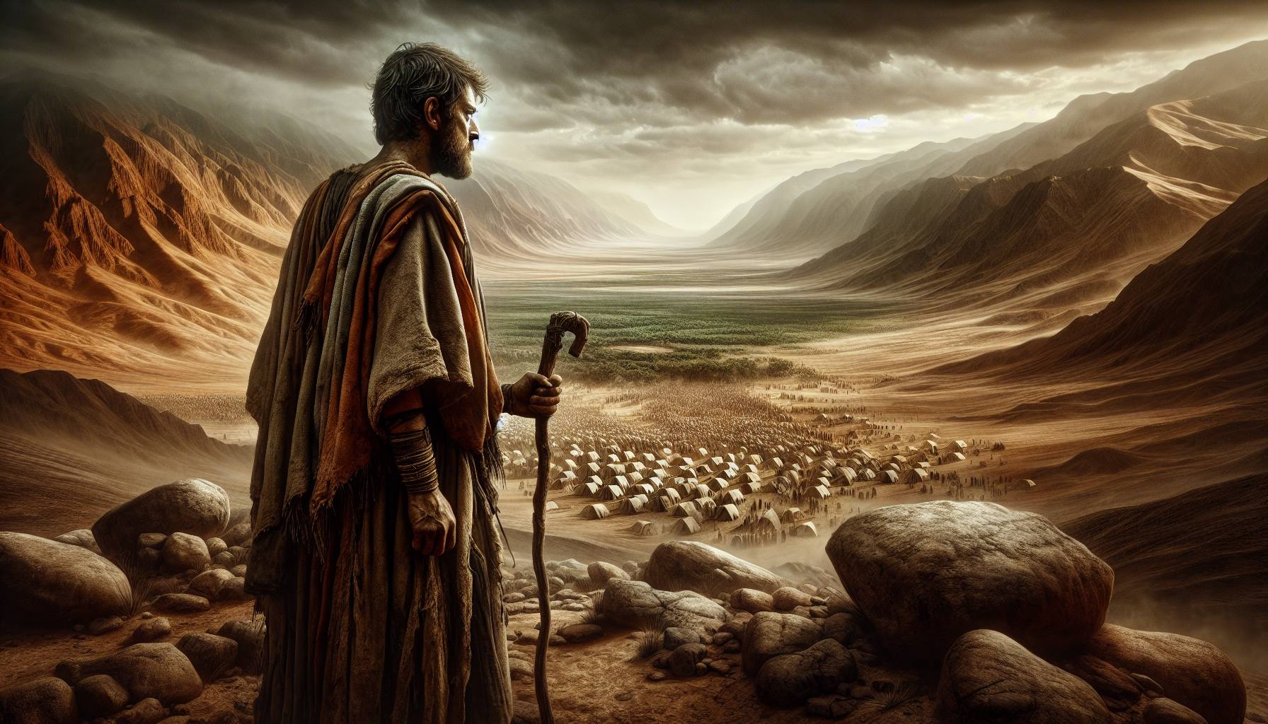 ヨルダン川の東側、モアブの野営地には、重たい沈黙が広がっていた。砂塵をまとった風…