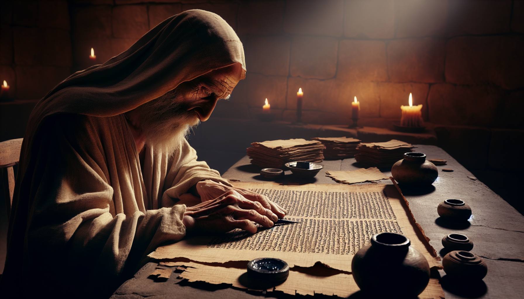 夜明け前の静けさが、神殿の廃墟を包んでいた。冷たい石の残骸の間を、ゼカリヤの足音…