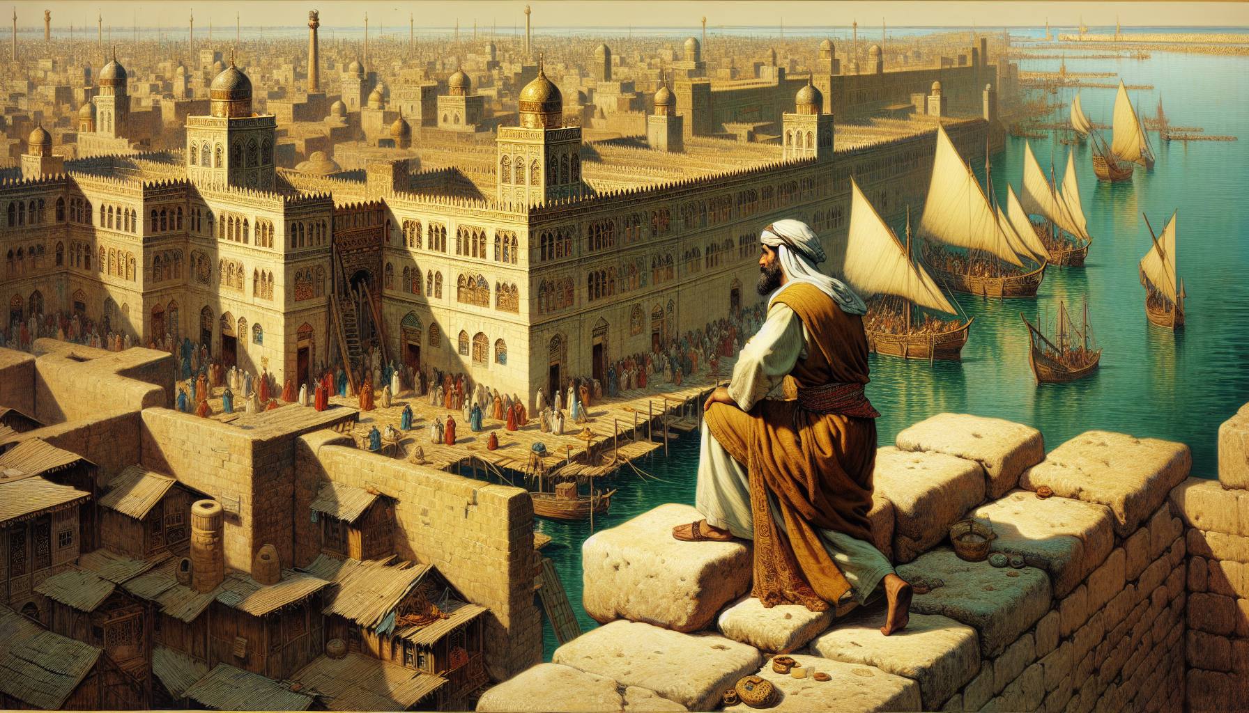 港は朝もやに霞んでいた。乳白色の靄が、杉材の船体や、積まれた香木の荷、騒がしい荷…