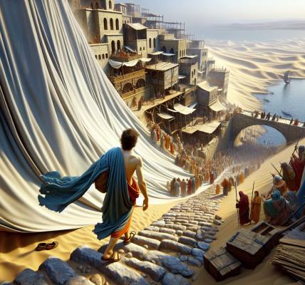カイザリヤの町は、地中海の青い海に面し、ローマ帝国の威光を感じさせる壮麗な建築物が立ち並んでいました。その町の中心には、総督フェリクスの官邸がそびえ立っていました。その日、官邸の広間は緊張に包まれていました。パウロは、ユダヤ人たちからの訴えを受けて、フェリクスの前に立たされていたのです。