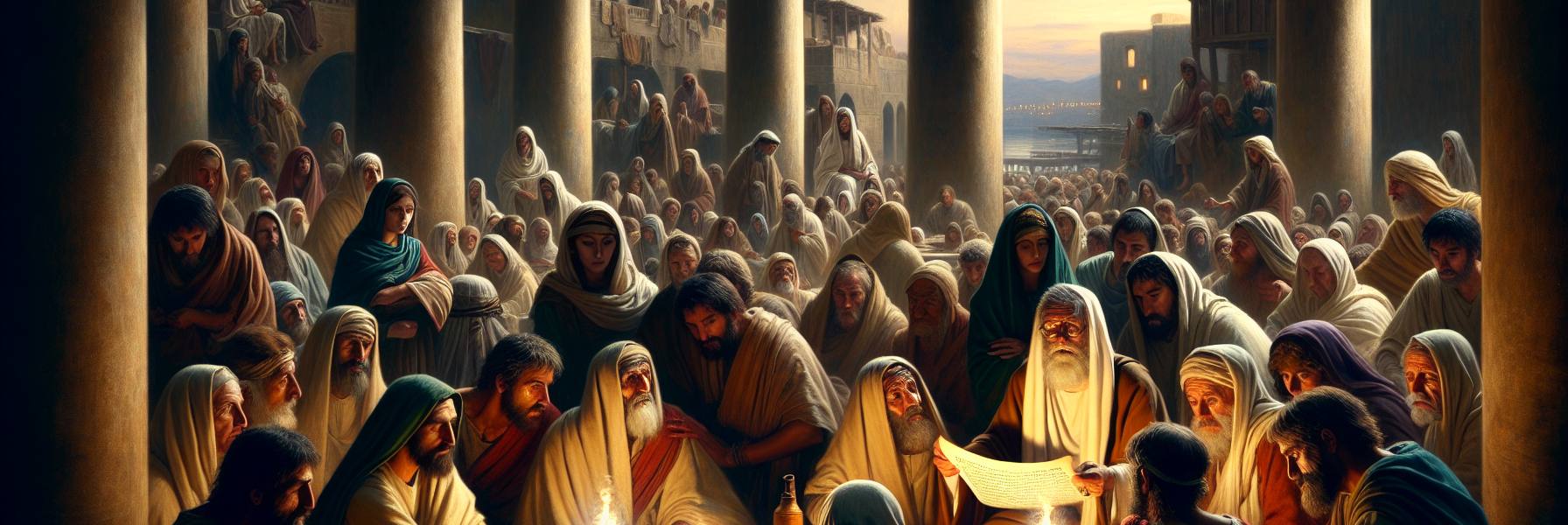 迫害が激しくなる中、ある者が異端の教えを持ち込んだ。「動物の犠牲が必要だ」と主張する者もいれば、「天使を礼拠せよ」と言う者もいた。その時、エリアザル長老が聖書の巻物を広げ、ヘブル語で語り始めた。「キリストの犠牲は一度で完全なのです」。彼の声には揺るぎない確信があった。迷っていた者たちは悔い改め、再び純粋な信仰に立ち返った。