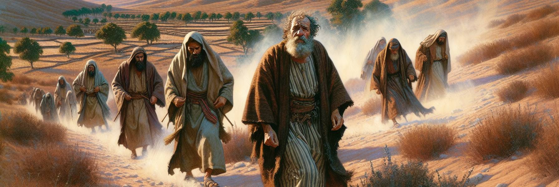 ヨルダン川の東側で、昼の炎暑が和らぎはじめた頃、モーセの声は枯れ野に響いていた。長老たちは革のように硬くなった掌を膝の上に載せ、女たちは幼子を懐に抱き、皆が彼の言葉に耳を傾けていた。四十年の旅路がこの男の顔に刻んだ深い皺は、彼の言葉一つ一つに重みを与えているようだった。