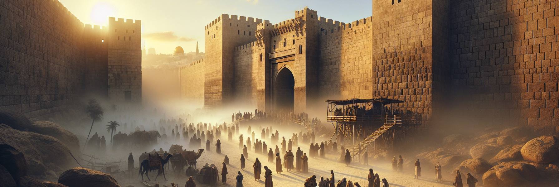 エルサレムの水の門の前の広場は、夜明け前からざわめきに包まれていた。東の山々の稜線がほのかに紫がかる頃には、男も女も、子供も老人も、理解できる者なら誰でも集まれという呼びかけに応じて、人々が石畳に座り始めていた。羊のにおいと朝露で湿った土の香りが混ざり合う中、祭司エズラは楓の木でできた台の前に立っていた。彼の手には、摩耗した皮で装丁された律法の巻物が握られていた。