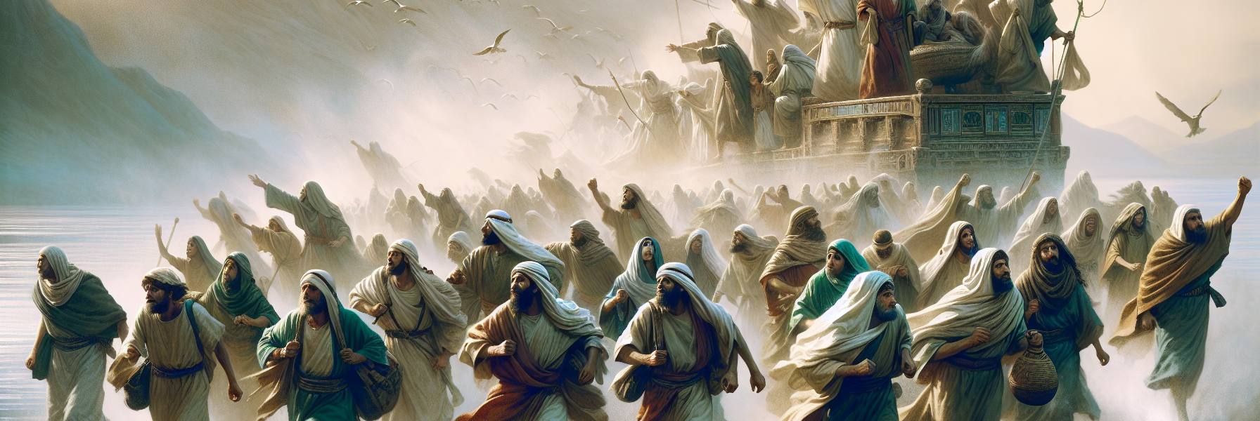 「あの日、私たちは葦の海の畔に立っていた。背後には、ファラオの戦車の地響きが聞こえ、鉄の車輪が岩を砕く音が、風に乗って届いていた。前には、水がどんよりと暗く横たわり、その向こうには何も見えなかった。絶望とは、あの水の色そのものだった。」