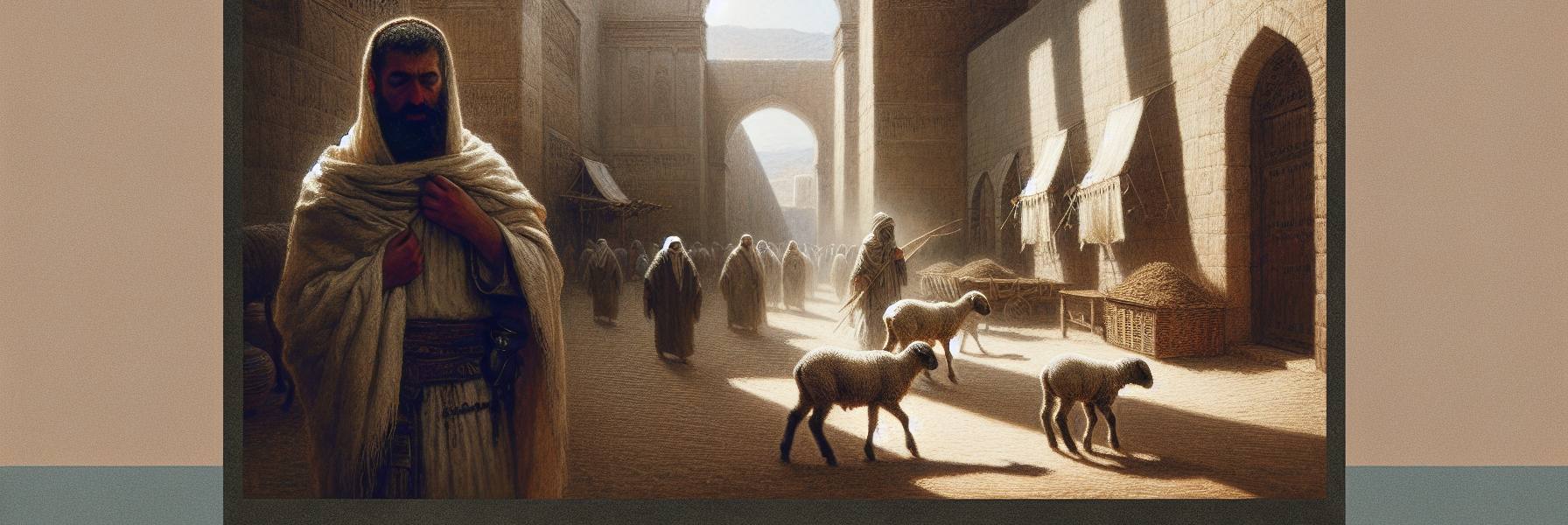 朝もやが幕屋の周りの野営地を覆っていた。砂漠の冷たい空気が、ほんのりと煙の気配を運んでくる。アヒムは柵の中で一番無傷な雄羊を選び、その首に荒い縄をかけた。羊は抵抗もせず、ただ琥珀色の瞳で彼を見つめた。その目に映る自分の姿が、何故か胸を締め付ける。
