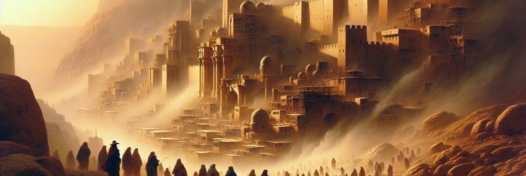 わたしは、この町の最も貧しい一角にある、土壁が崩れかけた小屋に住んでいた。かつてはエルサレムで神殿に仕える者の一族に生まれたが、今は名もない老いた捕囚民の一人だ。手には、長年の労苦で節くれだった皺が刻まれ、目には、遠く離れた故郷の山々を夢見たあまりの霞がかかっていた。この五十年近く、わたしはバビロンの土を踏みしめて生きてきた。その土は、我々の涙でしめり、ため息で固められたように思えた。