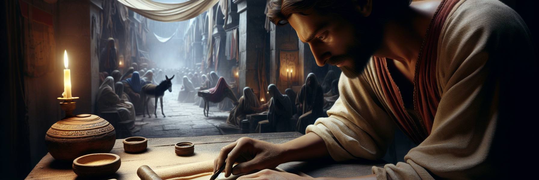 工房の片隅で、彼は一枚の皺になったパピルスを広げた。ローマに住む友人が、知り合いの旅商人に託してくれたものだ。サウロ、今はパウロと呼ばれるその男の、信徒たちへの手紙の写しだった。アレクサンドロスはギリシャ語を読むことはできたが、最初の幾行かで目が止まった。