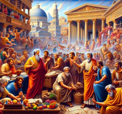彼は仕事場を後にし、西に向かう狭い路地を歩き始めた。壁には剥げ落ちた漆喰の下から、古いディオニソスの壁画がかすかに顔をのぞかせている。街角では、奴隷たちが重い陶器を運び、ローマの役人が馬車で通り過ぎる。すべてが、いつもと変わらない日常のざわめきだ。しかし、アンブロシオスの心には、もう一つの現実が芽を吹き始めていた。アリストスが、パウロの言葉を熱心に、時に吃りながら伝える様子。「彼は言うんだ、『神の御心は、あなたがたが聖なる者となることだ』って」。聖なる者。それは、神殿に仕える祭司のような、遠い存在を指す言葉ではなかった。アンブロシオスが毎日扱う羊皮のように、自分のありのままの生活、欲望、手の汚れの中に、何か別の生き方が示されているのだという。