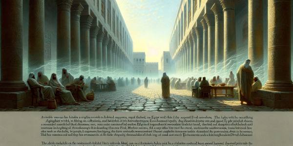 かつて、エルサレムの宮殿に影が長く伸びる頃、私は回廊の石畳を歩いていた。大理石の…