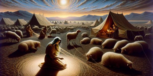 砂漠の風は、昼の灼熱が去った後でも、岩肌に残る熱を運び、亜麻の幕屋の周りをゆるや…