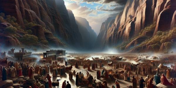 その日、ヨルダン川の東、荒れ地の縁に設けられた宿営で、火は低くくすぶり、夜の気配…