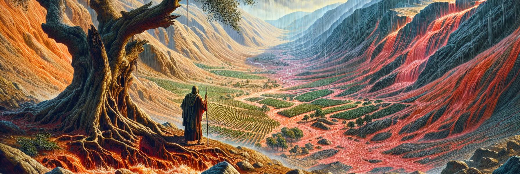 そして、その時、声の温度が変わった。暖かく、しかし、揺るぎない鉄の芯を感じさせる熱へ。「それゆえ、イスラエルの山々よ。主なる神の言葉を聞け。」エゼキエルは思わず背筋を伸ばした。神が、直接、山々に語りかける。その荘厳さに、膝が震えた。
