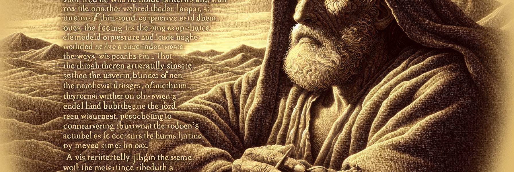 …ああ、今、私はこの灰の中に座っている。肌はかさぶたと膿に覆われ、骨はいたみ、かつては光り輝いていたこの目は、底なしの闇を見つめている。あの石段は今、誰が座っているのだろう。あの広場で、かつて私の声に耳を傾けていた者たちは、今、私の前を通り過ぎる時、目をそらす。風の匂いは変わらない。夕暮れの光は、相変わらずオリーブの葉のように柔らかい。ただ、すべてが逆さまになった。祝福は苦痛に、尊敬は憐れみに、確信は問いかけに変わった。