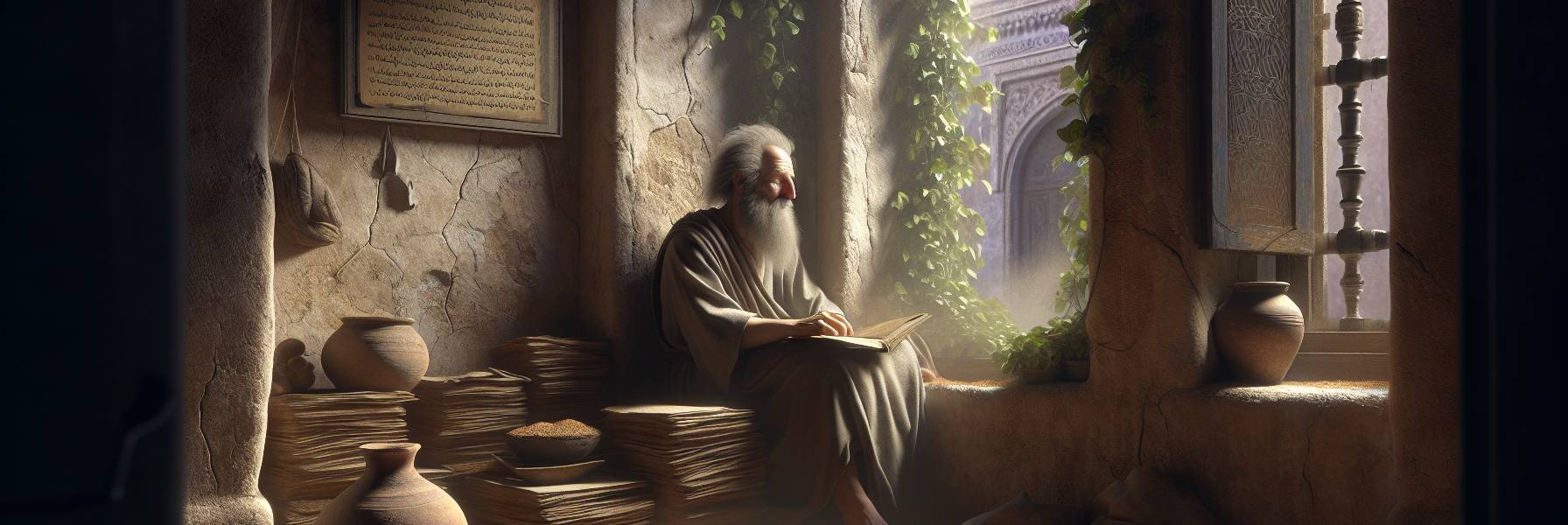 その日、埃っぽい風がバビロンのケバル川沿いの集落を渦巻いていた。窓という窓からは、粘土を焼くような熱気が流れ出し、どこからか子羊の鳴き声がかすかに聞こえてくる。エゼキエルは小屋の陰に座り、足元に散らばった干しイチジクをぼんやりと見つめていた。彼の心は重かった。捕囚の民の唸りのような祈りが、朝から絶えることがない。すると突然、あの感覚が押し寄せた。肩のあたりが締め付けられ、目の前の風景が、まるで水に映る影が揺らぐように、二重に見え始める。主の手が彼の上に置かれた。