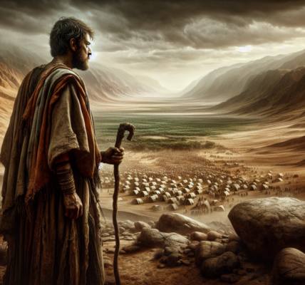 日が少し傾き、小屋の影が長く伸びていた。エゼキエルはゆっくりと立ち上がり、集落の方へ歩き始めた。彼はこれから、人々の前に立たねばならない。この重く、鋭い言葉を、彼らの魂に刻み込むために。彼らに、自分たちが今、まさに火の中に投げ込まれつつあるぶどうの木であることを、理解させねばならない。その言葉は優しくはない。しかし、それが偽りのない真実であることだけは、川の流れのように確かだった。風がまた吹き、彼の粗布の衣の端を揺らした。その風は、遠いエルサレムから、すでに焦げ臭さを運んでくるかのようだった。