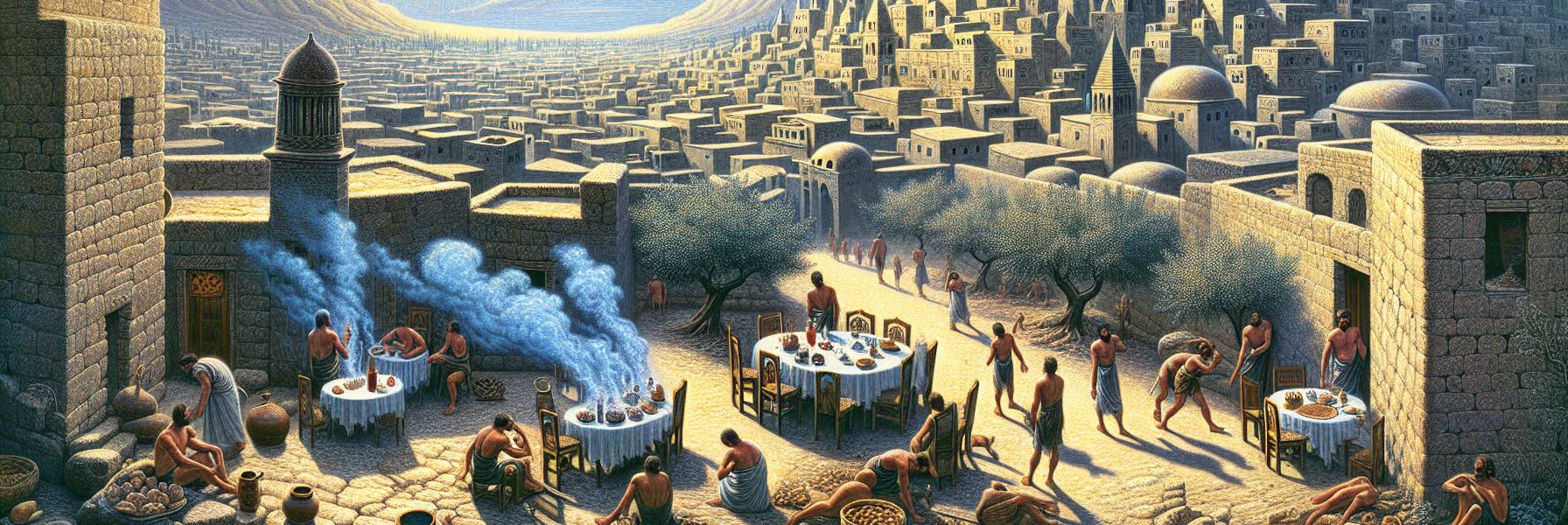幾日歩いたろう。風景は変わらず、オリーブ色がかった灰色の岩と、痩せた土地が続く。疲労は骨の髄まで染み込み、ある夕暮れ、彼はただ石が少し多いだけの、なんの変哲もない場所に足を止めた。日が完全に落ち、紫色の闇が大地を飲み込むと、荒野の寒気が一気に襲ってきた。昼の灼熱が嘘のように、肌を刺す冷たさだ。持ち合わせの糧は乏しく、心はなおも兄の怒りに囚われていた。これが「選ばれた者」の末路か。嘲笑うような星明りが、彼を突き放す。