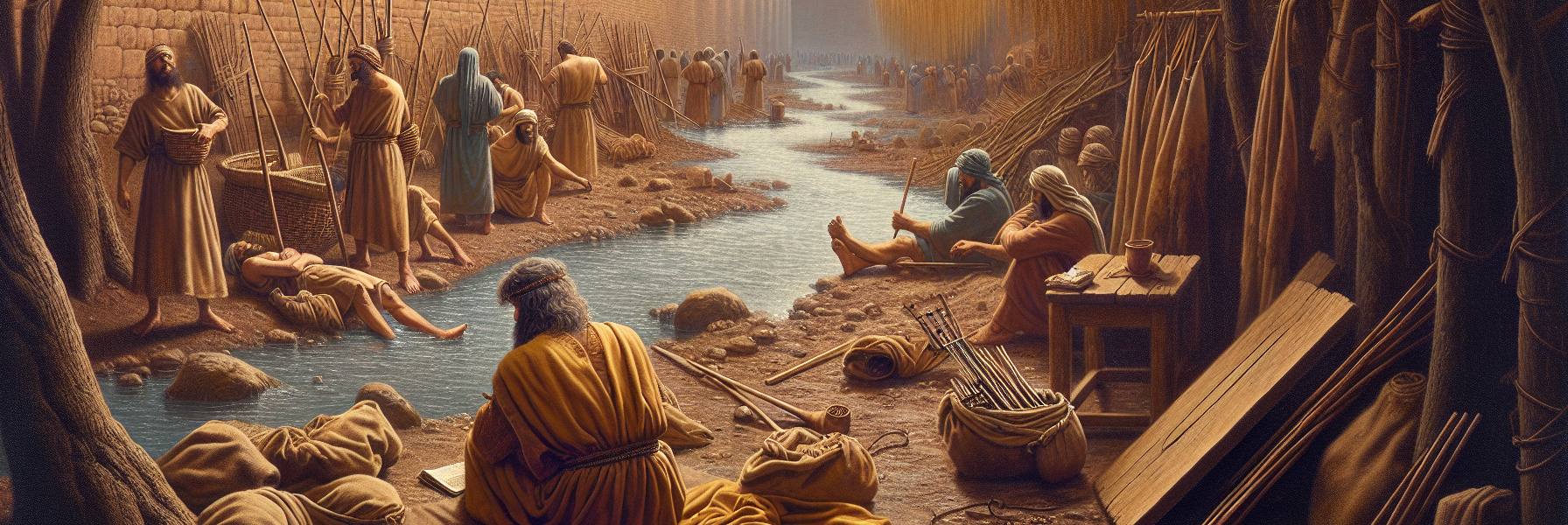その言葉に、私たちは互いの顔を見交わした。そして、無言でそれぞれの楽器を近くの柳の低い枝にかけ始めた。革の紐がこすれる音だけが、不必要に大きく響いた。楽器を木に預けることは、魂の一部をこの異国の土に置き去りにすることのように感じられた。しかし同時に、ある奇妙な解放感もあった。もはや、からかわれるために引きずり出されることはないのだ。