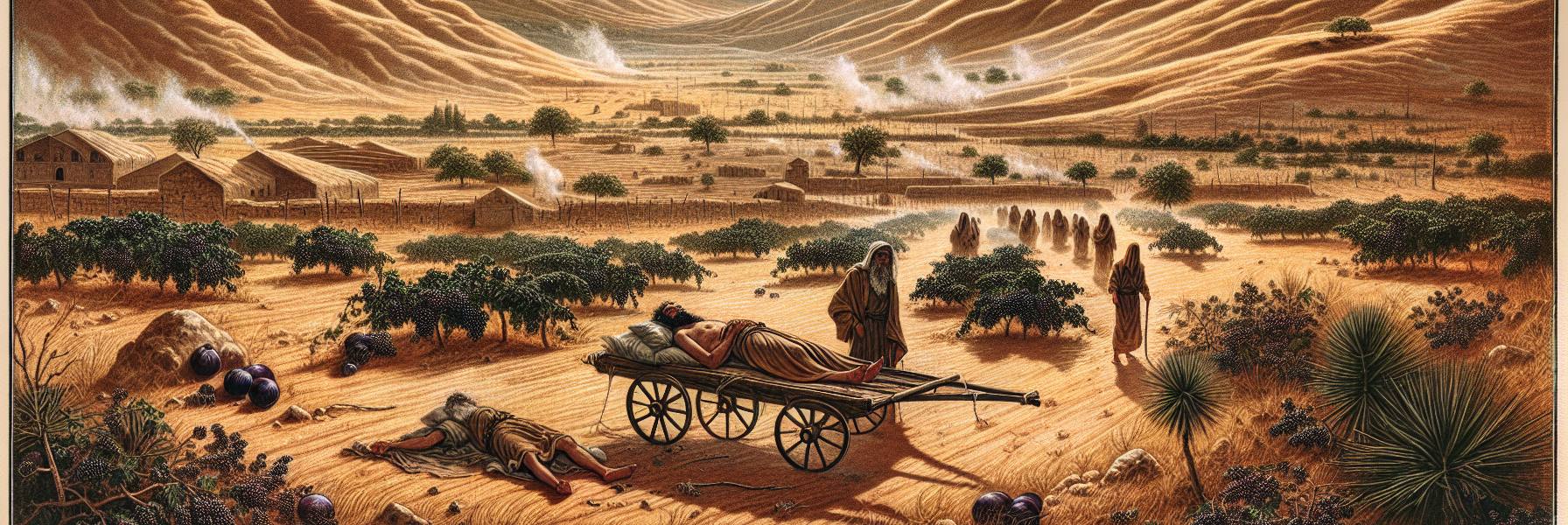 たちまち、町の空気は一変した。安逸な女たちの笑い声は消え、代わりに不安な囁きが路地に満ちた。飾り腕輪は売り払われ、柔らかい衣は旅装に仕立て直された。しかし、時はすでに遅かった。預言者が告げた「荒れ野」が、彼らの目の前に広がり始めていたのだ。肥えた畑は見る影もなく、かつて賑わった通りには雑草が生い茂り、宮殿の窓は破れ、廃墟のように口を開けていた。人々は、自分たちが愚か者を信じ、卑劣な者を称えていたことを、今さらのように思い知らされた。心を見抜く目もなく、正直な言葉を聞く耳も失っていた。