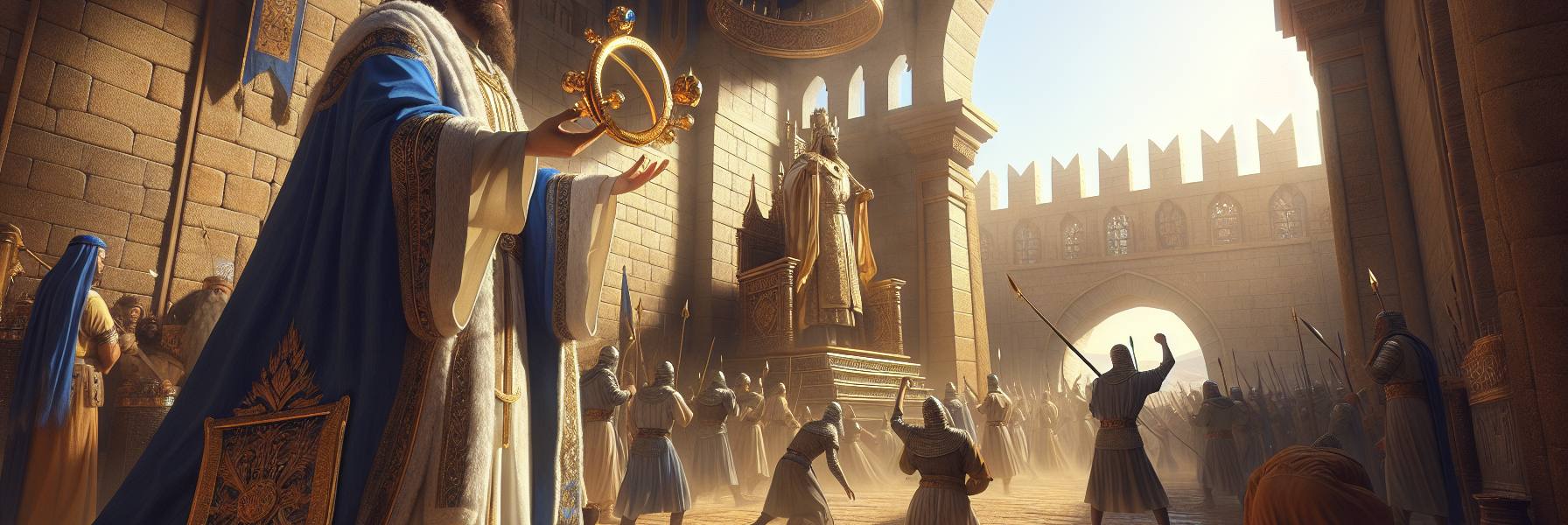 王はゆっくりと指輪を外した。金色の輪は、窓から差し込む朝日を受け、一筋の光を投げかけた。それを王は、部屋の隅に控えていたモルデカイに直接手渡した。モルデカイは深く礼をすると、指輪を受け取った。彼の手の甲には、年齢と労苦のしわが刻まれていた。そのしわの間に、権威の証が収まった。