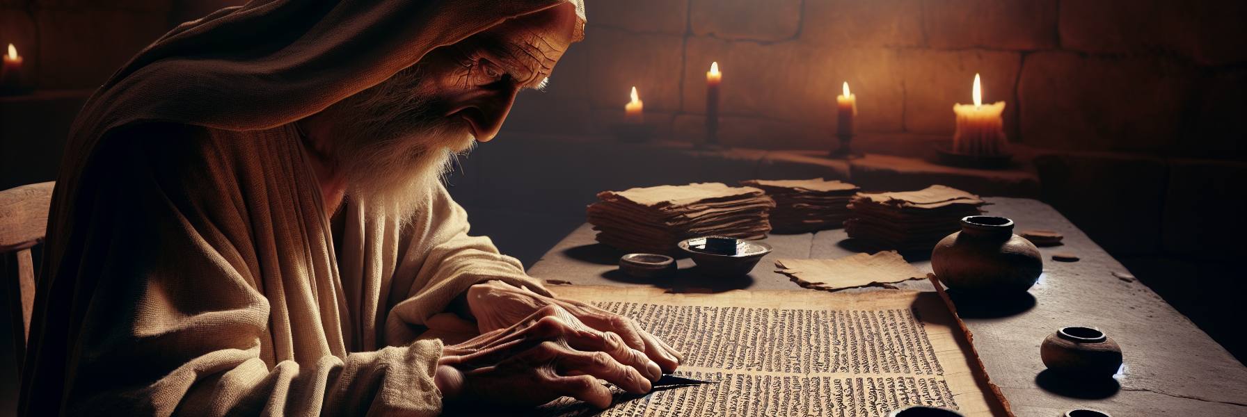 夜の気配が深まる。エゼキエルは、そっと胸に手を当てた。そこには、まだ見ぬ土地の地図が、そして、それを可能にする神の契約が、脈打つように息づいている。彼はため息をついた。それは疲れのため息ではなく、広大なものの一端を見せられた者の、深い、静かな驚嘆の吐息だった。書き留めなければならない。この秩序を。この希望を。羊皮紙の上に、彼の手が動き始めた。最初の一節。「相続地の最も北の端は…」。言葉は、彼が幻で見たとおりに、しかし時に淀み、時に勢いよく、流れ出ていった。完璧な文章ではない。切れ味の鈍い思考の跡も残る。だが、それは生身の人間が、計り知れない約束を、必死に自らの言葉で捉えようとする、その営みそのものだった。やがて、四十八章が、歴史の闇の中に、一筋の確かな線として刻まれていくのである。