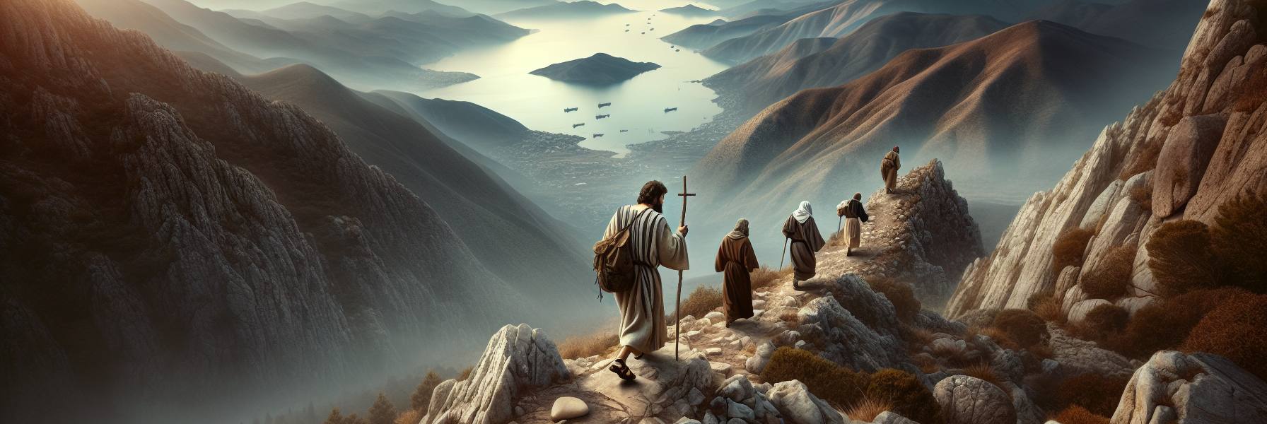 山の空気は鋭く冷たく、登るにつれて足元の小石がごろごろと音を立てた。ペトロは息を切らしながら、イエスの後ろ姿を見つめていた。なぜヤコブとヨハネと自分だけが選ばれたのか、その理由はわからなかった。ただ、先生が「さあ、来なさい」と言った時の顔は、いつもとは違う、重たい決意に満ちているように見えた。