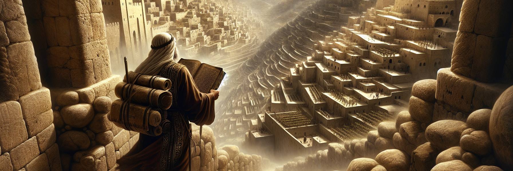 風がそよぎ、彼の粗布の衣の端を揺らした。答えはまだない。いや、あるのはただ一つの恐るべき確信だけだ。神は生きておられる。そして、その業は始まろうとしている。ハバククは、この新しい重荷を抱え、闇に包まれていく都を見つめたまま、長い時間、立ち尽くしていた。