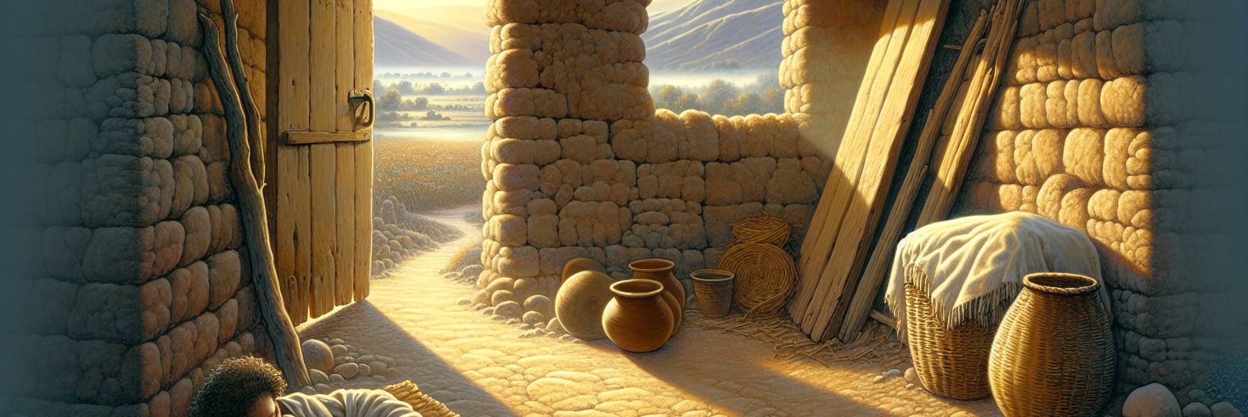 その朝、ヨシュアはいつもより早く目が覚めた。窓というには粗末な、壁の隙間から差し込む淡い光が、土間の埃を浮かび上がらせていた。息をつくだけで、収穫前の緊張した空気が肺に入ってくるようだった。彼はゆっくりと起き上がり、古びた毛布のぬくもりを離れた。足の裏に伝わる土の床の冷たさが、今日という日が特別であることを、もう一度思い出させた。