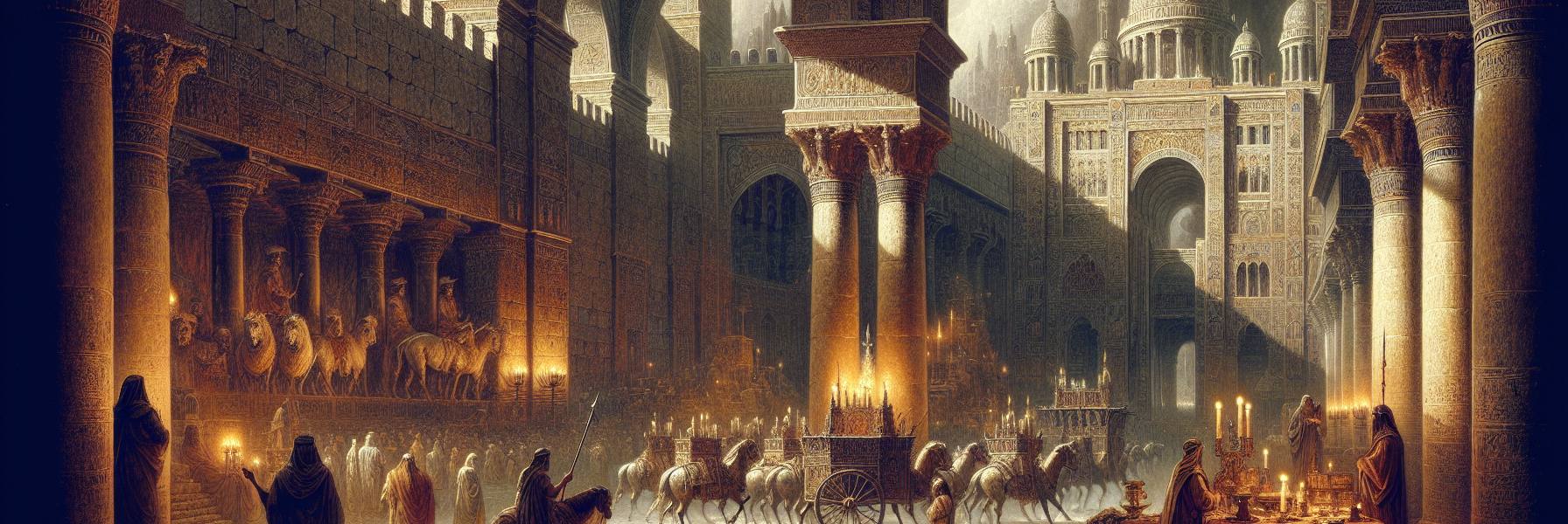 ネブカデネザルは、主の宮と王宮の宝物をことごとく奪い取った。ソロモンが苦心して造り上げた金の器物も、日常の務めに使われる青銅の器も、全てが戦利品としてバビロンへと運ばれていった。そして王は、エホヤキンとその母、妻たち、高官、この国の有力者たち一万人を捕囚として連れ去った。工匠や鍛冶に至るまで、残る者はただ貧しい民だけとなった。ネブカデネザルはエホヤキンの叔父マタンヤを王とし、名をゼデキヤと改めさせた。