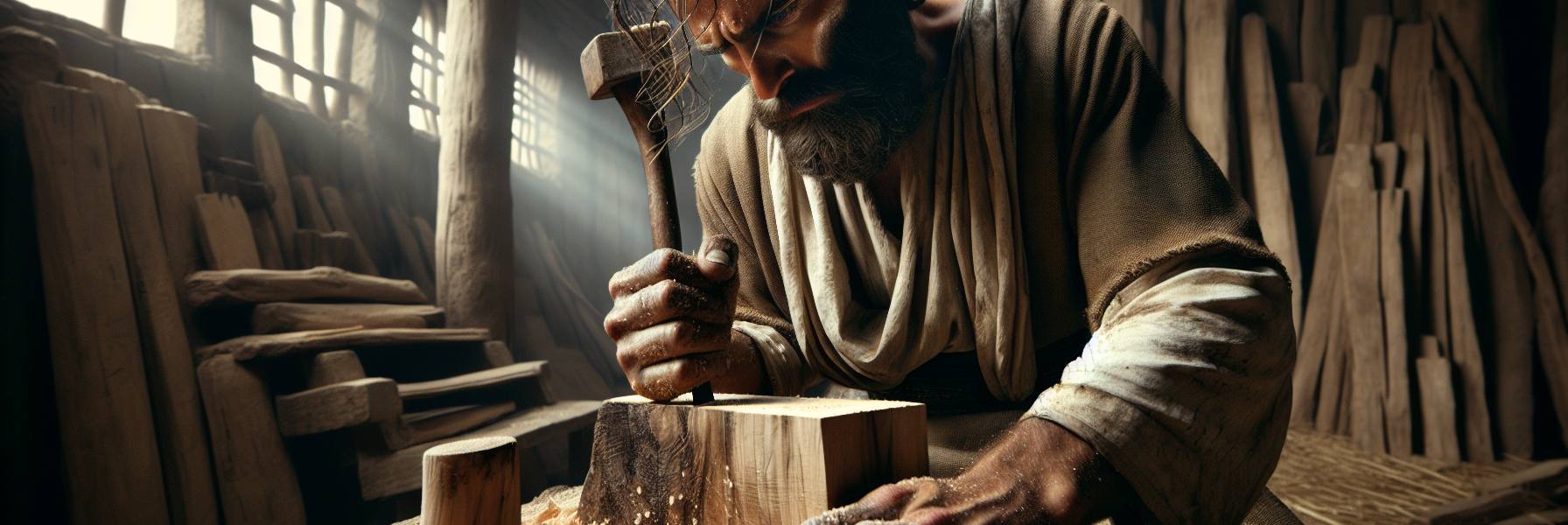 しかし、幻は次第に色を変えた。イザヤの心に、別の光景──現実の、しかし愚かな光景が浮かび上がる。都の職人区画の片隅で、一人の男が木工台に向かっていた。彼は数日前、山からしっかりとした樫の木を切り出してきた。斧の刃が陽光を反射し、木屑が舞う様は、ある種の壮麗ささえあった。男はその木の半分を巧みに炉にくべ、燃え上がる炎で自分を暖め、そばで鉄を熱し、そして焼き肉をあぶって満足げに食べた。体が温まり、腹が満たされる。彼はほっとため息をついた。