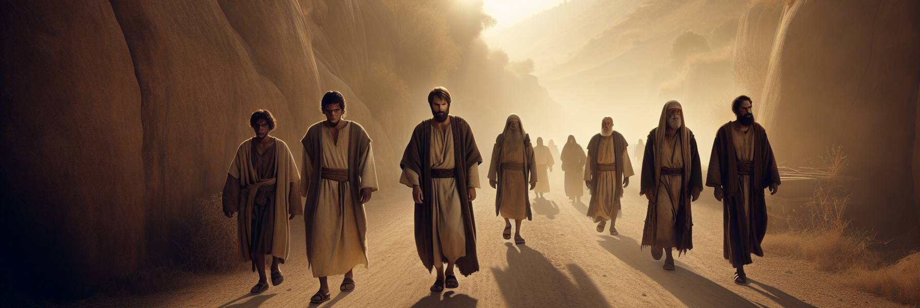 その問いが、静かな空気に投げかけられたとき、イエスはゆっくりと座っていた岩から立ち上がり、目を細めて遠くの村を見つめた。風が枯れ草を揺らし、何かが彼らの心の中でも揺れ動いているのを感じさせた。イエスは答えず、代わりに小道を歩き出した。弟子たちは慌ててその後を追った。