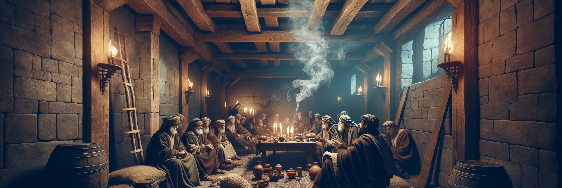 過越の祭りのためのエルサレムは、昼間の熱気が石畳に残るような夜だった。家の上の間に集まった者たちの顔は、一つ二つと灯されるオリーブ油のランプに揺らめき、壁に巨大な影を投げかけていた。外はすっかり闇に包まれ、部屋の中には、食べ残された食事の匂いと、張り詰めた静けさが漂っている。ペトロが突然何か言おうとして口を開いたが、結局ため息だけで、再び俯いた。